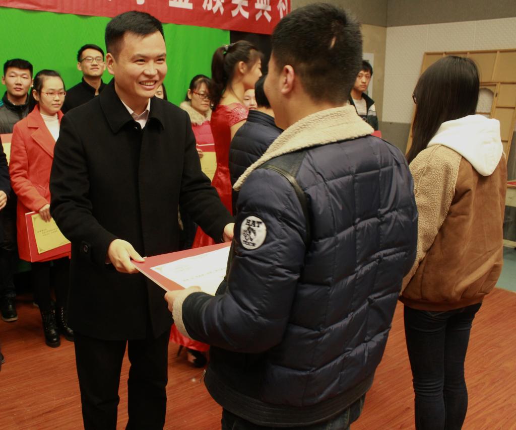 12月9日下午,太阳城集团在B合七演播厅举行2016年第五届“海舟”奖学金颁奖典礼。校员工处处长张鹏辉、公司党总支书记赵颖、经理刘道全、党总支书副记李立夏莅临现场。受表彰员工、各班级负责人以及部分员工代表参与了本次颁奖典礼。