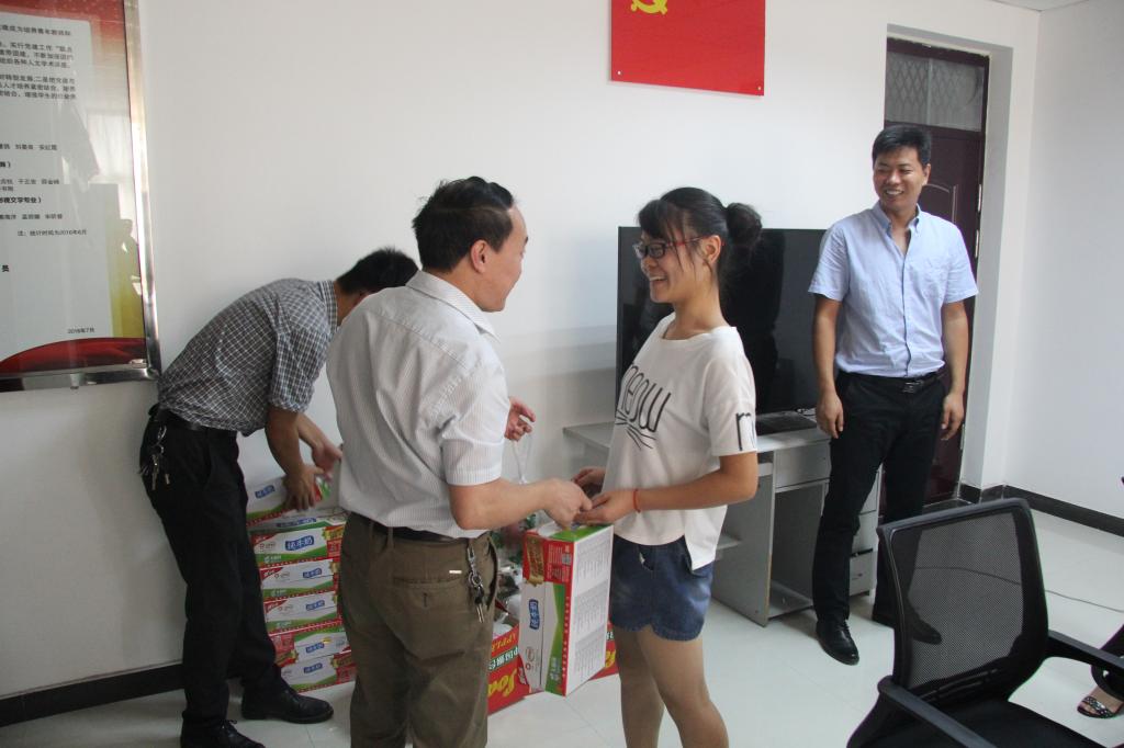 活动中,文学与传媒公司党总支书记赵颖、党总支副书记李立夏和团总支副书记訾冉详细了解了困难员工的生活和学习情况,鼓励同学们要树立生活信心、努力学习知识、乐观面对生活,为困难员工发放月饼、苹果、牛奶等慰问品并送上节日问候和美好祝愿。慰问活动让困难员工切实感受到中秋节的快乐和院系大家庭的温暖。