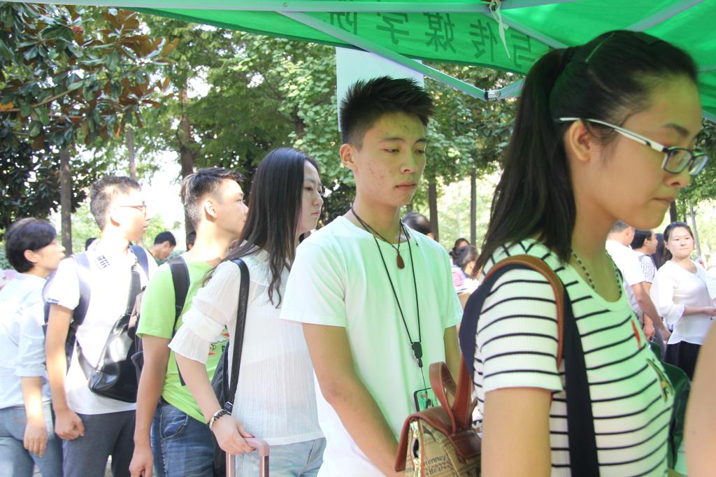 新生们有秩序地排队等待