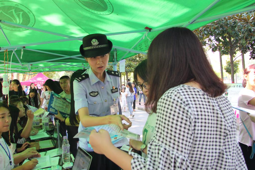 公安保卫人员对新生们普及安全防诈骗知识