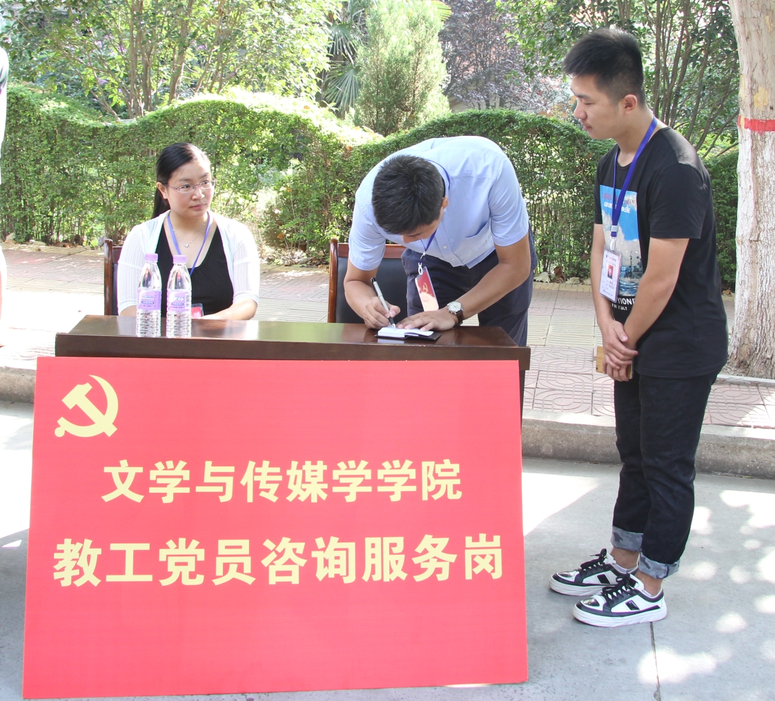 9月9日上午,一年一度的迎新工作拉开了帷幕。为更好的做好“迎新”工作,进一步贯彻落实党员“两学一做”学习教育活动,公司党总支在“迎新服务点”设立党员咨询服务岗,组织教工党员深入一线开展迎新服务工作。