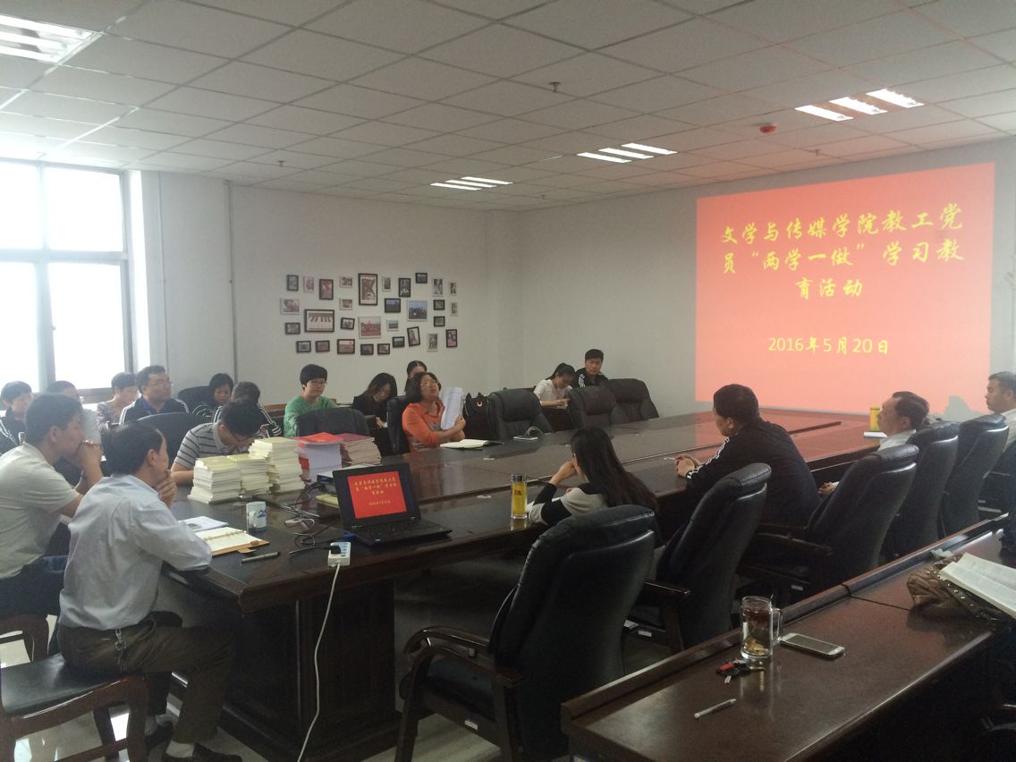 5月20日,文学与传媒公司党总支在会议室组织召开了教工党员“两学一做”学习教育。文学与传媒公司党总支书记赵颖、副书记李立夏和全体教师党员参加了本次活动。活动传达学习了《关于全体党员中开展“学党章党规、学系列讲话,做合格党员”学习教育(以下简称“两学一做”学习教育)方案》的精神要求。