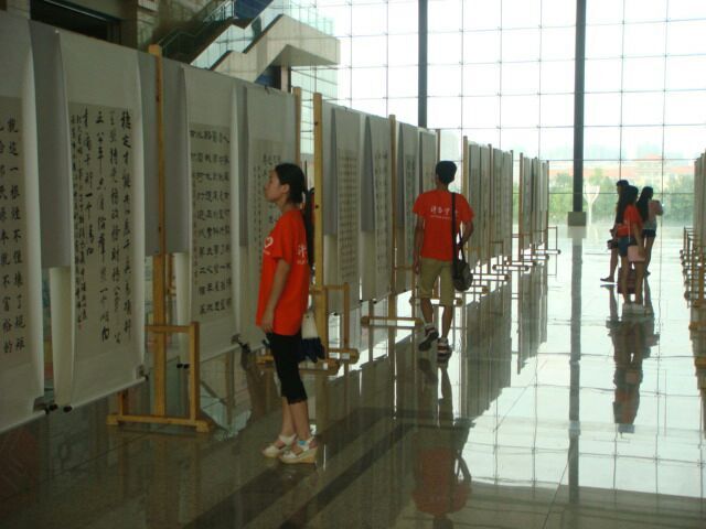 首先来到许昌大剧院,陈列了许多优秀的书法作品,力透纸背、笔精墨妙。此次书画展的内容是文艺工作者创作出的一批歌颂燕振昌同志感人事迹的文艺作品,展出书法、摄影、美术设计3个门类的作品150余件。从一幅幅的作品中,队员们感受到了燕振昌那种大公无私的精神,并为之感动。接着,队员们来到许昌博物馆对博物馆的一万两千余件馆藏文物进行了参观,包括青铜器、陶器、瓷器、玉器、字画等,其中汉代的画像艺术是许昌博物馆的收藏特色之一。“以铜为镜,可以正衣冠、以人为镜,可以明得失、以史为镜,可以知兴替。”队员们不仅领略到了中华民族文化的博大精深,更重要的是深刻体会到要以古人和历史为镜,不断审视自我,提升自己,从而为中国特色社会主义建设做出应有的贡献。同时,这次活动让队员们走进许昌图书馆,亲身感受到各个阅览区安静舒适的阅读环境,也查阅到大量有关许昌文学的资料与书籍,为调研工作的进一步开展提供了帮助。