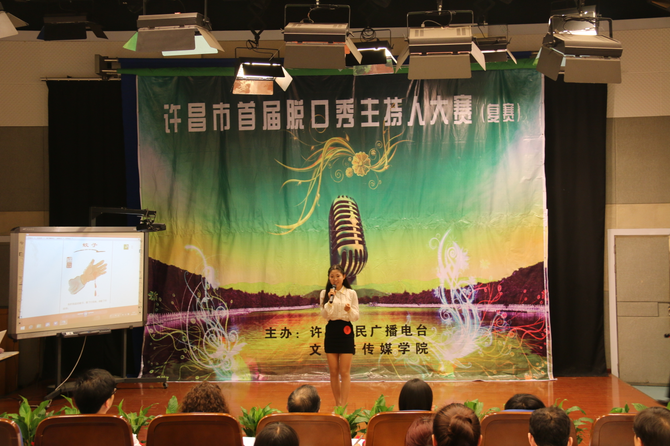 5月29日下午三点,由许昌人民广播电台与太阳城集团太阳城集团共同举办的许昌市首届脱口秀主持人大赛复赛在公司B合七多功能演播厅举行。许昌人民广播电台文娱广播总监杨松山、音乐广播总监闫芹、太阳城集团专业老师刘临春、黄杰、张懿担任评委。许昌人民广播电台总编辑何永超、副台长牛长建等到场观看了比赛。