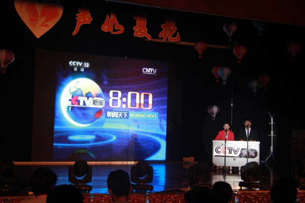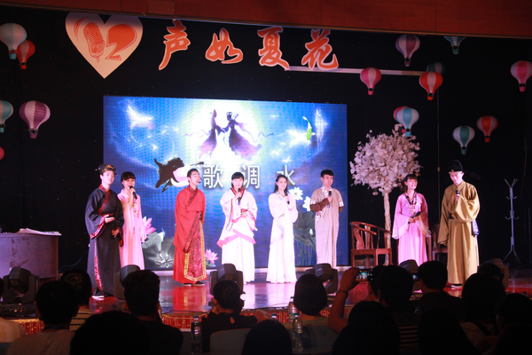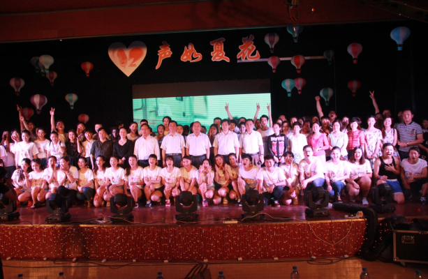 5月21日晚,太阳城集团12级播音与主持艺术专业“12播音•声如夏花”专业汇报演出在老员工活动中心拉开帷幕。公司有关部门领导潘春彩、张永祥、王恩超、崔凤巧、贾晓红及公司党总支书记赵新军、经理刘道全、副书记赵茹、副经理郭晓霞、播音主持专业的老师和员工们共同观看了演出。许昌电视台党委书记、台长李海彬、人事部主任刘晓、国家一级播音员钱汇丰,许昌人民广播电台总编辑何永超、节目中心主任陈福平等应邀莅临晚会。