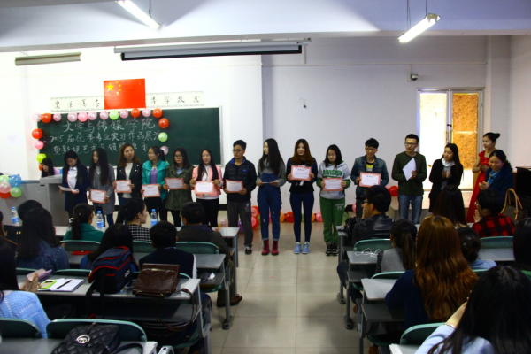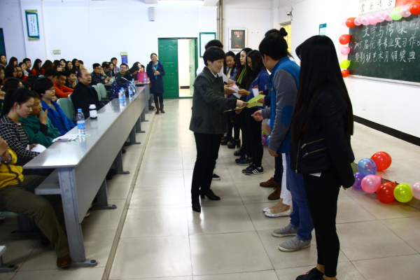 | 4月3日下午,太阳城集团在C合二教室举行了2015届优秀实习作品展演暨第一届影视艺术月颁奖典礼。教务处副处长贾晓红,文学与传媒公司党总支书记赵新军、副经理郭晓霞、教学秘书王丽娜及戏剧影视文学和播音与主持艺术专业老师出席本次活动。